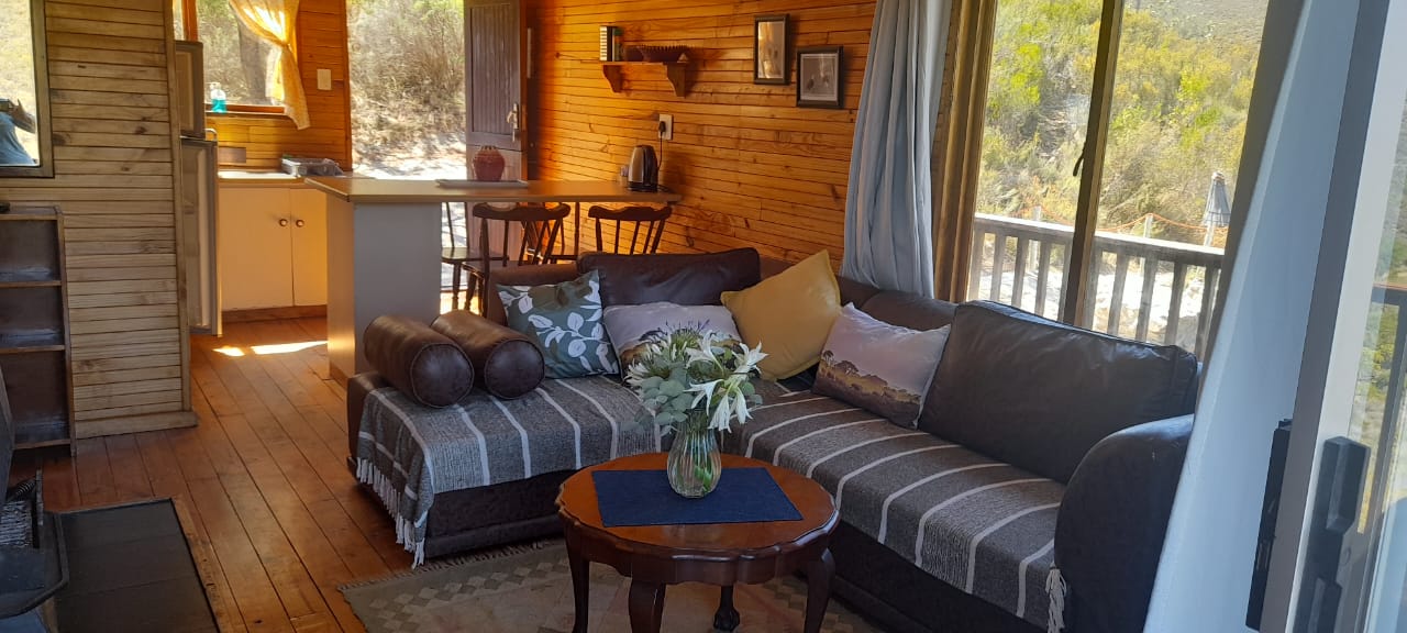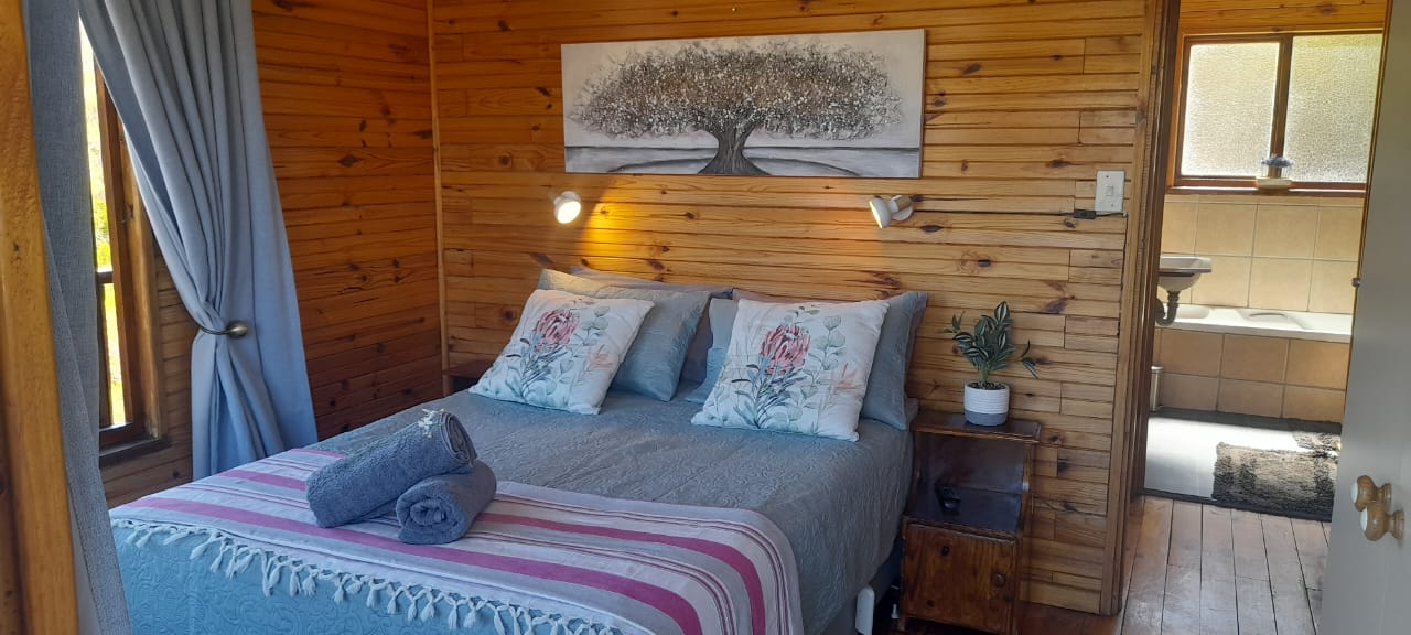 Main bedroom with double bed, direct access to the deck area and a lovely view to the Kammanassie Mountains.